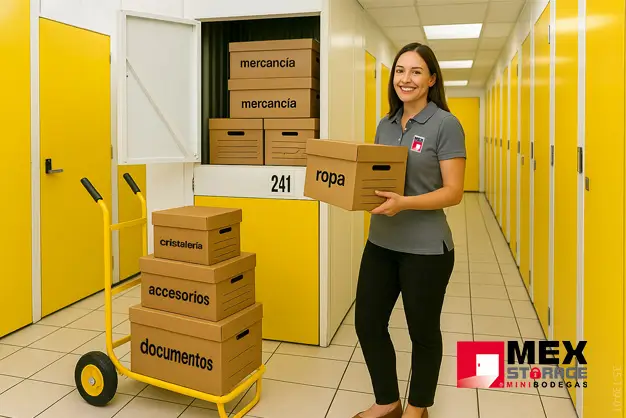 Coloca los objetos que vayas a utilizar frecuentemente hasta adelante y procura guardar los artículos de mayor valor hasta el fondo de nuestra Mini Bodega. Las cajas más pesadas deben ser colocadas en la parte inferior.